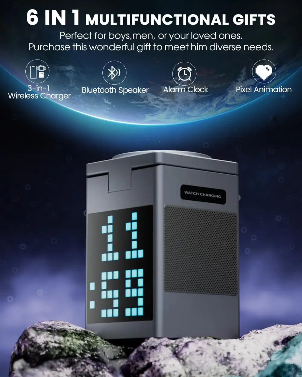 - All-in-One Smart Charging Solution: The Valdus Pixel Dock redefines convenience by combining a 15W wireless phone charger, a 5W earbud pad, and a 3W watch charger—all in one sleek platform—allowing users to power multiple devices simultaneously without clutter or tangled cables.